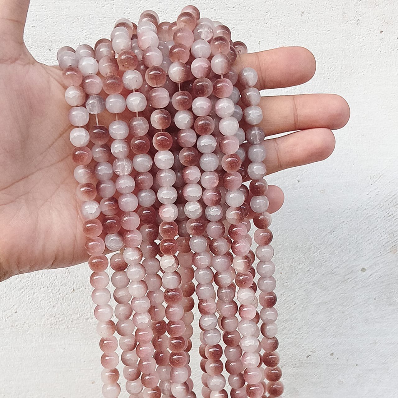 dual beads, brown , 8mm glass beads / double shade jelly beads quantity